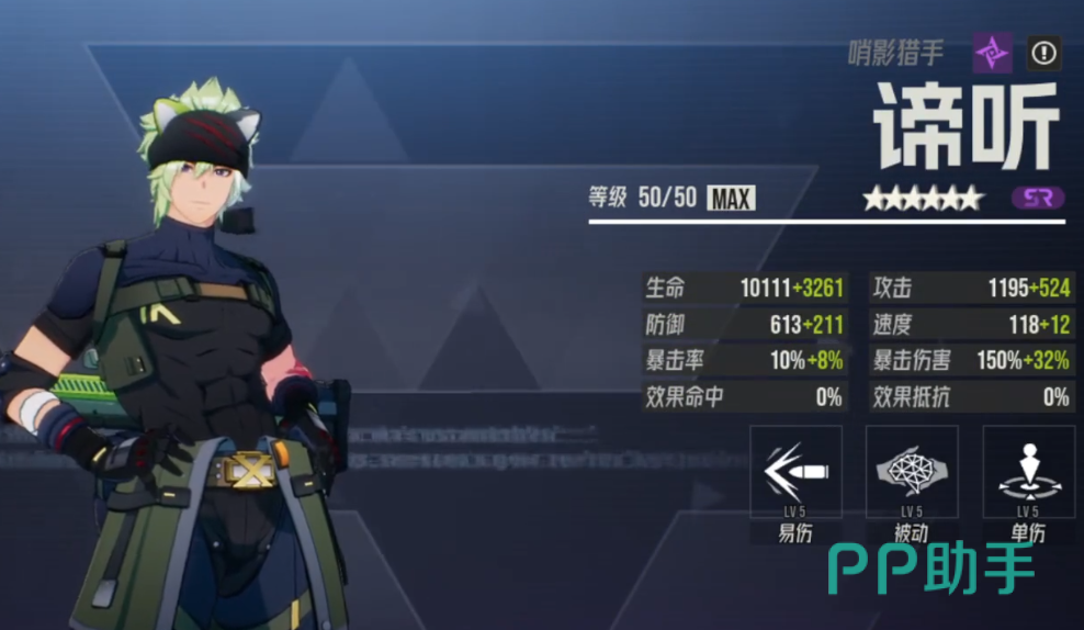 最后介绍的是获取门槛较低但强度不容小觑的SR角色谛听。虽然品质不及UR级角色,但其技能机制极具操作空间。他通过标记系统构建输出循环:每次攻击可为目标附加标记,下次攻击被标记单位时,将额外触发一次普攻机会。同时,普攻有一定概率施加“易伤”Debuff,进一步提升团队整体输出效率。只要玩家能精准把控攻击节奏,充分利用标记刷新机制,谛听同样能在单体战斗中发挥出色表现,是非常适合新手过渡或平民阵容的核心选择。