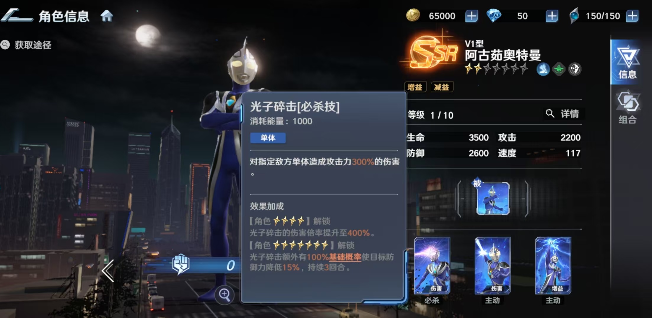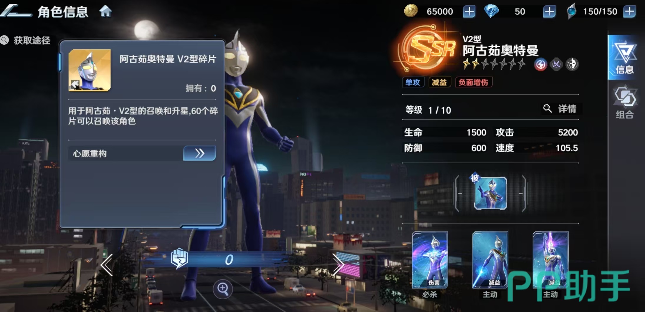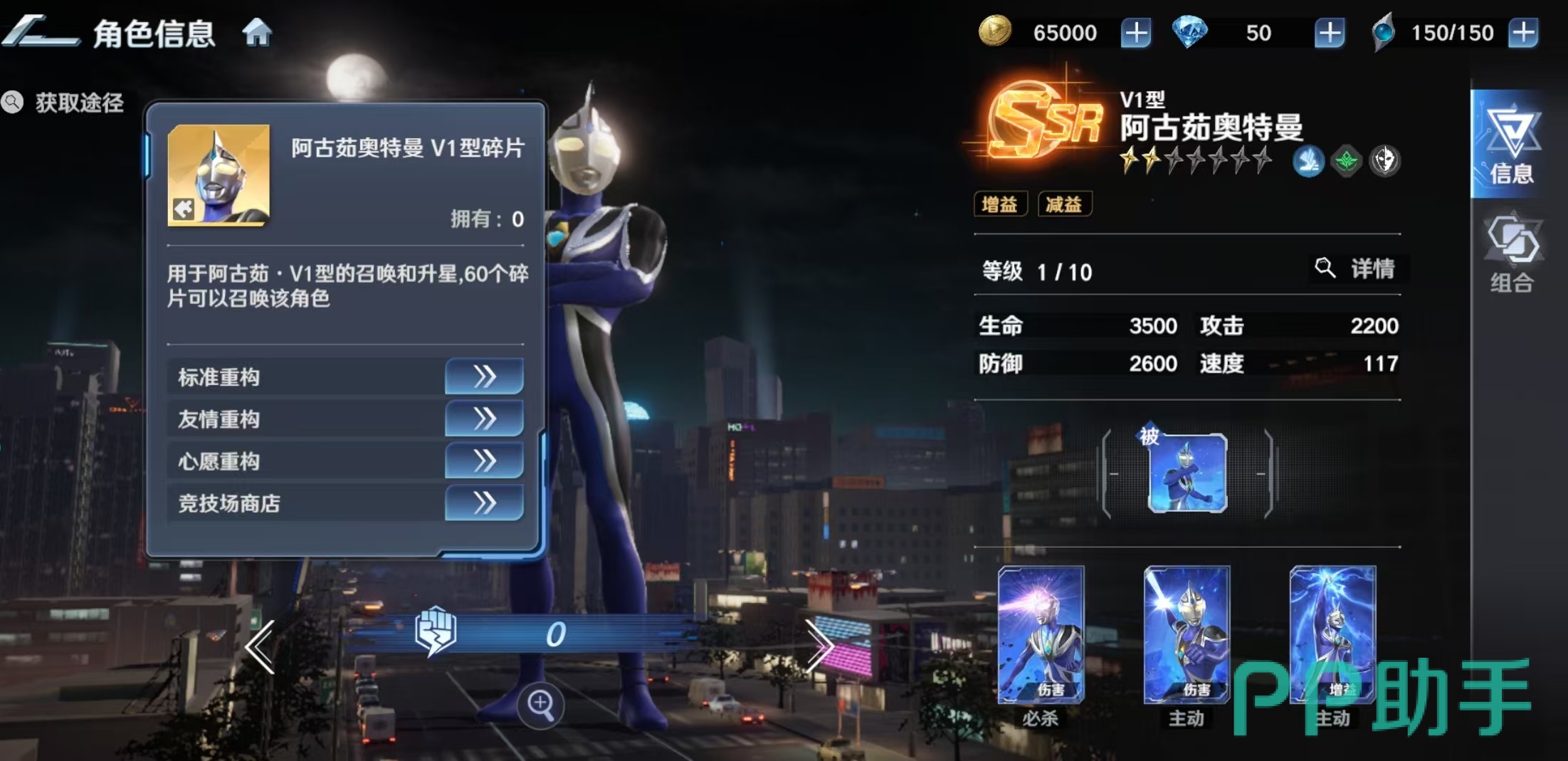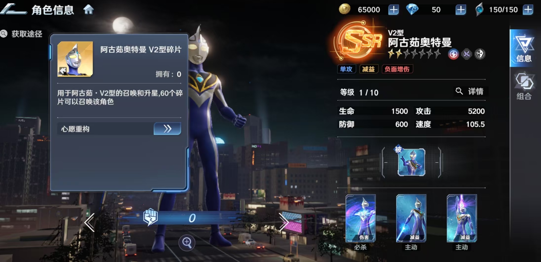 游戏中,阿古茹奥特曼共拥有两个形态版本:阿古茹奥特曼V1型与阿古茹奥特曼V2型,两者均为SSR稀有度角色,但在技能机制与获取路径上有所不同。首先来看阿古茹V1型,其获取渠道较为多样,可通过标准重构、友情重构、心愿重构以及竞技场商店兑换等方式获得。这意味着玩家不仅能在常规抽卡池中抽取,还能通过积累竞技点数直接购买,整体获取稳定性更高,适合新手阶段优先考虑入手。