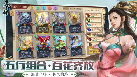 在这个以五行元素为基础的卡牌世界里,玩家需要掌握五行相生相克的奥秘,构建最强的卡组。每张卡牌代表不同的五行属性,如何巧妙利用卡牌间的相生相克关系,成为克敌制胜的关键。五种属性卡牌的组合带来了无限的策略变化,战斗中合理安排卡牌出场顺序和位置,将决定最终的战局。游戏能让你感受传统文化的深厚魅力,战斗中充满浓浓的中国风。