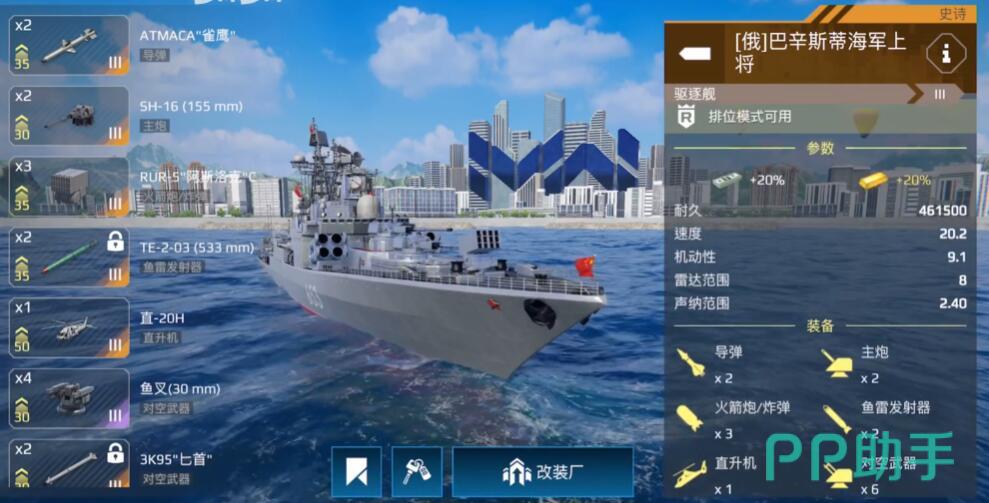 巴辛斯蒂海军上将是游戏中性价比极高的三级驱逐舰,主打反潜与中距离火力压制,适合低氪或新手玩家过渡。为了帮助大家快速上手,小编带来一期现代战舰巴辛斯蒂海军上将的玩法介绍其优势在于防空槽位灵活、反潜能力突出,但航速较慢(仅15.5节),需依赖卡山战术与团队配合。