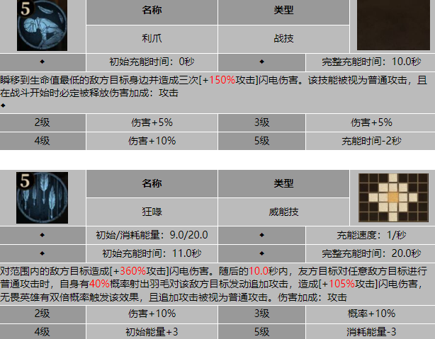 战斗技能叫做利爪,发动这个技能的时候纳斯捷卡可以瞬移到敌人中生命值最低的那个英雄身边造成三次的闪电伤害,还是加成了百分之一百五的攻击伤害,发挥出来的伤害量十分客观,并且在战斗开始的时候是必定释放一次的。