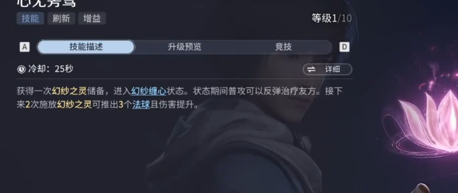 幻纱之灵则定位于远程多功能辅助型共鸣,融合精准打击、延迟爆炸、群体治疗与状态干预于一体,适用于中远距离拉扯、团战控场及团队续航支援。普攻自动发射追踪魔球,无视手动瞄准即可锁定目标;完美闪避后可立即触发强化攻击。该共鸣配备双充能法球机制:投掷后延迟引爆,覆盖圆形范围并造成集中爆发伤害。其核心主动技“心无旁骛”需在法球存在期间释放,使用后立即重置法球充能,并使下一次法球攻击附带反弹治疗效果,治疗量同步惠及附近友方单位,实现控场与支援同步达成。