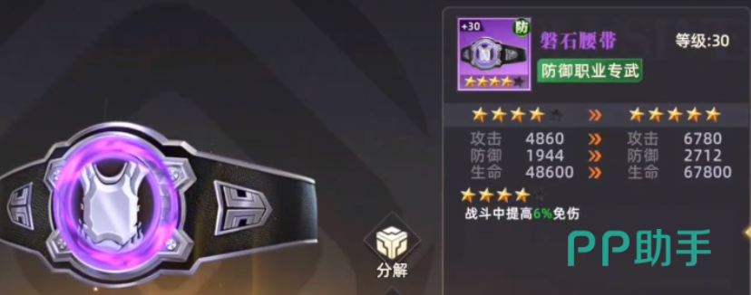 专为防御型职业打造的紫色品质专属武器。虽未强调攻击与防御数值,但拥有极高的基础生命值,并在战斗中稳定提供6%免伤效果。随着星级提升,其减伤幅度与附加效果将持续增强,是构建高坦度前排、支撑持久战阵型不可或缺的战略级装备。