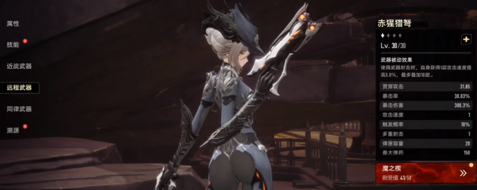 从属性来看,该武器拥有高达31.85的贯穿值,在面对成群敌人时具备出色的穿透能力,能够一次性对多个目标造成伤害,有效应对密集单位围攻的情况。同时配备30.03%的暴击率和300.03%的暴击伤害,在攻速叠加完成后,暴击触发频率显著上升,配合高额暴伤,瞬间输出能力急剧攀升,因此也被玩家广泛称为“射速之王”。