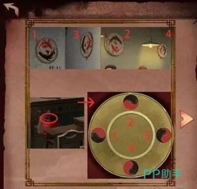 这个时候可以看到一个密码箱,用密码:439可以打开。这样的话就顺利拿到吸铁石,拿到吸铁石后就可以拿到厨房柜子的钥匙。这里又开始有点难度升级,需要依靠吸铁石把钥匙吸住钥匙走一个小迷宫才能顺利拿到钥匙。钥匙到手后就可以去开柜子,然后用油提子装油,然后顺顺利利回到自己的座位上,把香油和蒜泥放在对应的位置。吃顿火锅也是不容易,终于可以点菜了!菜单的话是上上签,牛肚,关刀肥牛。点完菜以后,系统就开始作妖了,主人公的女朋友莫名消失,小编都有准备去看看女朋友还在没在呢,主人公这个时候需要出去找公用电话。可以看到右边小卖部有个猴子,点击小卖部右后方的一个小木盒子,按钮顺序的是左右右左右左左右,会出现一根铁丝,拿到铁丝以后去勾下水道里面的发条,然后回忆一下刚刚提到的猴子,把铁丝安在猴头上,这个时候突然觉得创作者真是百无聊赖,也突出一只猴子的重要性!言归正传,到这里就能获得玻璃柜密码:1324。