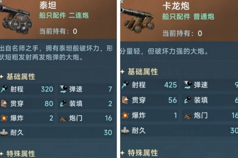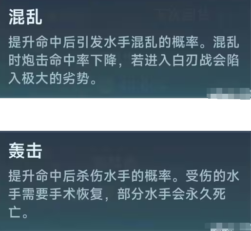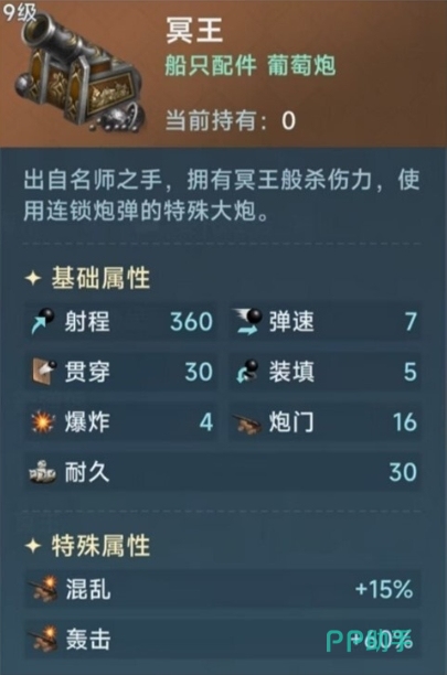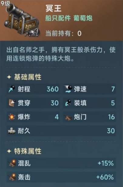 葡萄炮的使用主要在接舷战之前,所以它的两个特性非常重要,造成混乱之后进行轰击,混乱可以对敌人的水手造成混乱的debuff,同时让敌人的水手炮击命中率下降,在进入白刃战之前就陷入了劣势之中,而轰击可以提升自身的杀伤概率,尤其是可以对敌人的水手造成概率性的永久死亡,杀伤力极大,所以喜欢白刃战的玩家可以装载这门炮。