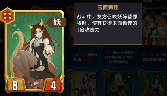 妖阵营的核心竞争力在于成型速度快以及具备持续压制能力。“不屈”是该阵营独有的专属特性,可视为决定战局的关键技能——除毒类伤害外,几乎能免疫所有一击必杀效果。在面对汉阵营常用的欲火或屏障体系时,妖族表现出极强的对抗优势。团战期间,这一机制显著提升了生存容错率。相较于其他种族,妖族前期依靠低星卡牌即可平稳过渡,中期迅速进入强势期,非常适合偏好快节奏对局的用户。