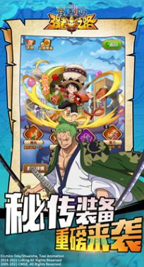 这是一款获得动漫《海贼王》正版授权的卡牌策略手游,它带来了新颖的游戏体验与地道的动漫角色设计,确保每位海贼迷都能亲身感受到航海探险的无尽魅力。在游戏中,玩家可以自由收集心仪的海贼角色,与他们携手踏上茫茫大海,共同探索伟大的航道,追寻那传说中的神秘宝藏。游戏高度还原了动画的经典剧情与独特角色性格,通过绚丽的角色设计与逼真的动画场景,带玩家重温那段热血的冒险旅程。