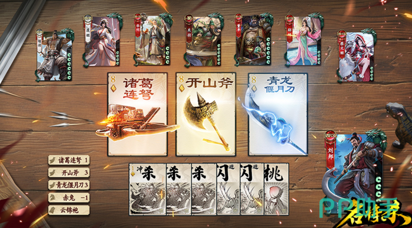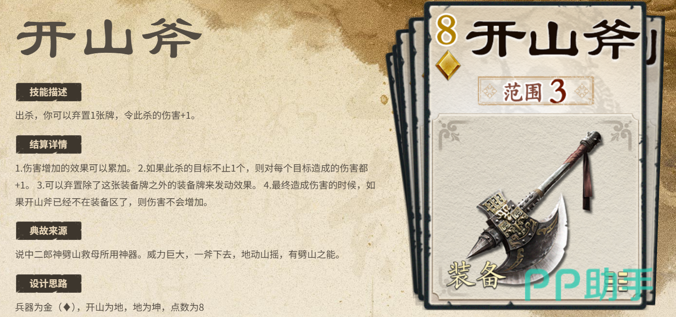 与【云锦袍】的防守定位不同,【开山斧】是土属性中少见的高爆发进攻型装备。其技能设定为:使用【杀】时,可通过弃置一张手牌使该次伤害+1。此机制支持连续叠加,玩家可在一轮内多次触发以形成高额输出。尤其在面对多个目标时,每一名被命中者均会受到+1点伤害加成,使其在群体作战中具备极强的清场潜力。这种设计让【开山斧】成为扭转战局的重要手段。
