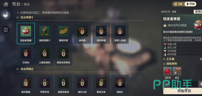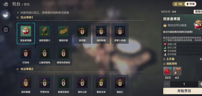 当然并不需要多么美味的食物,只需要烤一些蘑菇。烤完蘑菇然后去捡一些果子,就可以制作成最为基础的放逐者果酱。这种果酱就会拥有比较出色的优势,一旦在吃完之后就可以大幅度的提升耐力的上限,也可以增加血量的上限。