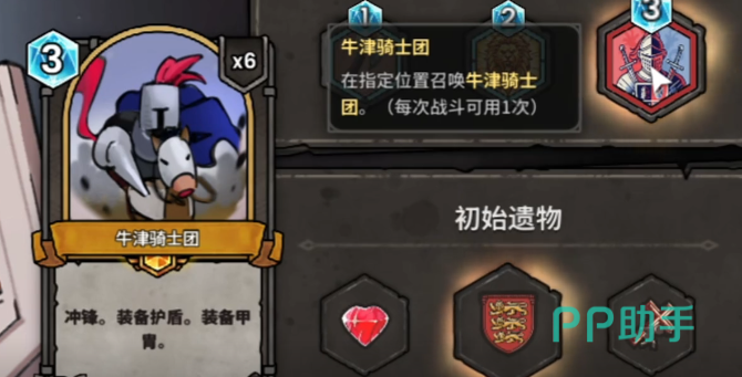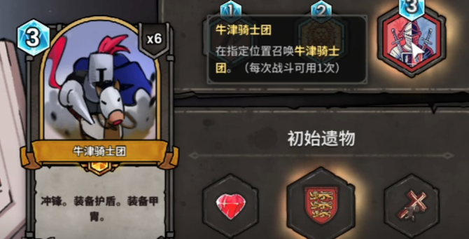 第二回合骑兵卡牌入场后,立即调整阵型:骑兵前置突击,弓箭手后置压阵,形成标准冲锋梯队。第三回合果断打出“牛津骑士团”,凭借其高额单体伤害与连锁击破特性完成首波斩杀,并同步解锁“巨鹰”与“用兵术”两张关键新卡。“用兵术”具备全局手牌强化效果,但当前缺乏范围清场手段,因此优先选择“巨鹰”补足AOE短板——其群体打击能力在应对杂兵集群时效率突出。随后推进至实验室区域,触发问号事件获得“哥布林存款”。此时采用轻骑兵开路、小步兵跟进补位的组合,可高效瓦解敌方前排防线。