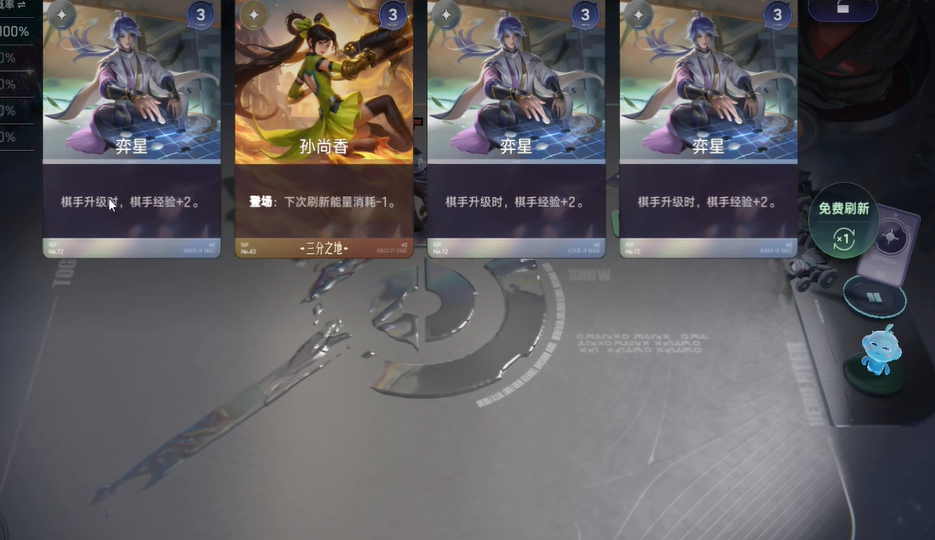 大河长线流依赖图腾系统实现等级成长,属于典型的后期发力型阵容,适合善于运营、具备较强局势把控能力的玩家。该流派主要由弈星和杨玉环支撑体系运转。每当队友释放技能,弈星可为其提供额外经验,加快整体升级速度;而杨玉环的作用在于加速卡牌英雄的觉醒进程,进一步提升阵容强度。