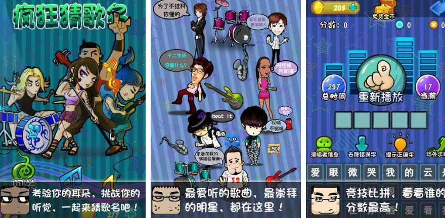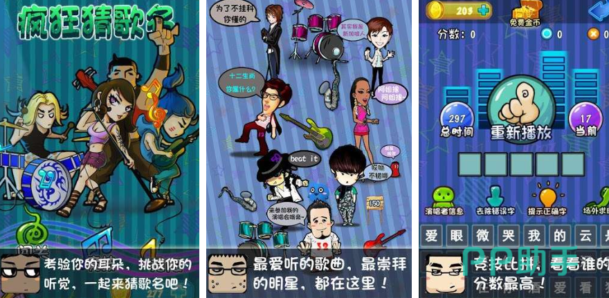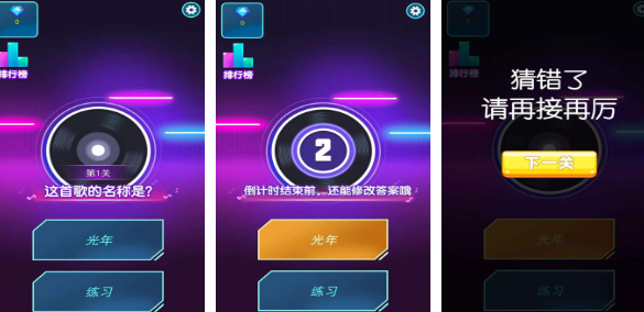 这款游戏的玩法简单,玩家在游戏中只需要在规定的时间内将歌曲名字猜到即可通关。在游戏开始的时候,会完整的将歌曲释放出来。玩家在有限的时间内进行歌名的猜测,游戏融合了多种音乐。经典与流行都会在游戏关卡中出现,通关成功获得游戏积分奖励。能够解锁更多好听的歌曲和玩法展示!