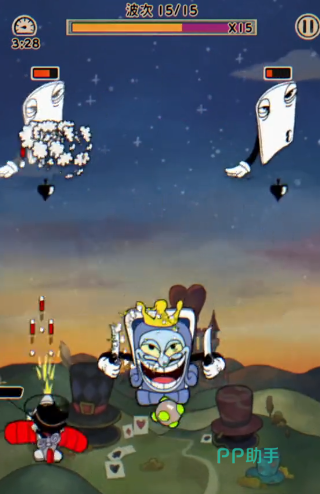 更为严峻的是周围不断刷新的杂兵单位,刷新速度极快且数量庞大,形成密集干扰阵型。在应对黑桃K主攻的同时,极易因疏忽而被杂兵碰撞造成额外伤害。这些扑克类小怪虽个体威胁低,但集体出现时极易打乱节奏,导致血量快速流失。整个战斗强调躲避优先、输出为辅的原则,尤其在面对不可破坏目标或群体围攻时,反应速度远比攻击力更为关键。