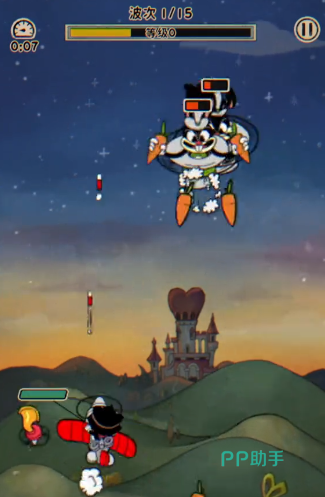 开局阶段会遭遇一只具备突袭能力的飞行兔子,它不仅能在空中移动,还会持续投掷胡萝卜进行远程攻击。虽然兔子本身可以被击败,但其投出的胡萝卜轨迹密集且难以预判,若未能及时闪避,角色将持续掉血。建议通过左右滑动屏幕调整位置,结合投掷物的落点角度进行规避,确保生存率。