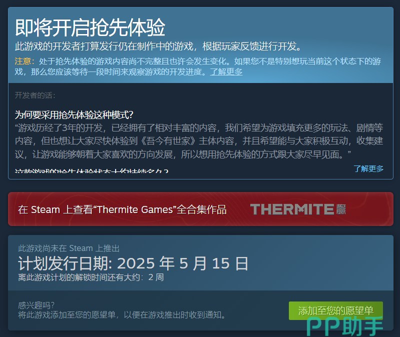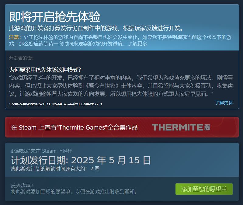 《吾今有世家》的抢先体验版将于 2025年5月15日登陆Steam平台,售价为 58元人民币,首发前两周还可享9折优惠。不过正式版的发布日期目前尚未公布,但抢先体验版中已包含核心玩法,官方表示后续将根据玩家反馈逐步优化内容。