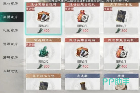 《三国天下归心》商店体系具备强时效性特征:每逢大型版本更新或限时活动开启,交易市场将同步扩容上架品类,并触发阶段性价格浮动机制。部分热门道具可能出现限时折扣,建议玩家关注活动日程,在资源丰沛期集中完成主力阵容强化与关键缺口填补。