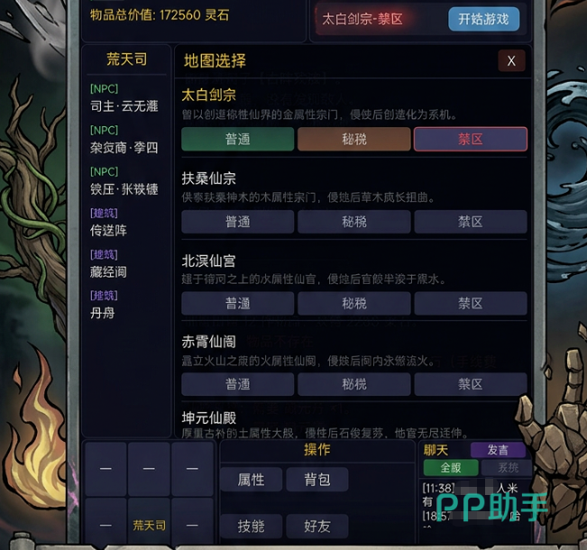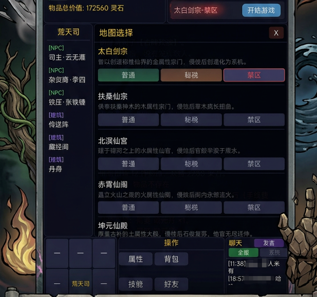地图采用分层探索设计:初期开放常规区域供玩家熟悉机制与积累基础资源;随境界提升逐步解锁高风险高回报区域,如禁地、古墟、灵脉裂隙等特殊场景,其中可获取稀有灵材、上古残卷及专属功法碎片,直接关联角色战力成长节奏。