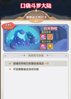 其中,魂兽追击特权卡是一项极为关键的游戏道具。拥有该卡后,每日猎魂药剂的恢复上限将额外增加10点,同时解锁自动追击功能。猎魂药剂作为参与追击的必要消耗品,其恢复速度直接决定了可进行抓捕的次数。而自动追击功能则大大减少了手动操作频率,让玩家无需频繁点击即可持续进行狩猎,尤其适合日常挂机使用。若未持有此卡,则无法启用自动化流程,因此建议有能力的玩家尽早获取。