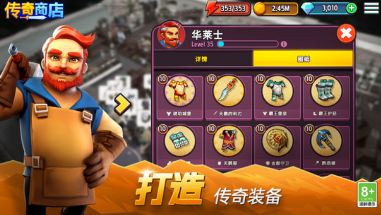 想要让店铺的收益更好,那就需要加入到贸易公会中,这样成员们可以一起制定经营计划,并且不断打造更高级的装甲和武器,游戏场景设计的非常立体,除了可以直接进行物品的售卖之外,玩家还可以在游戏里亲自打造属于自己的英雄,这样就能直接让这些英雄使用店铺里的装备,进入到黑暗神秘的洞穴寻找破坏者,通过不断和他们战斗收集更多的稀有材料。