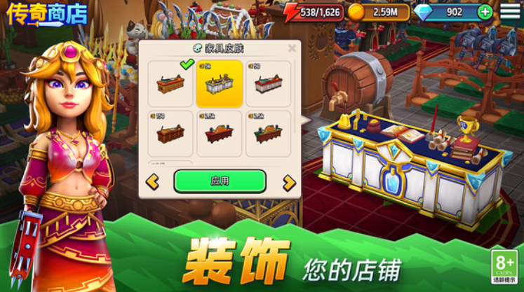很多经营游戏一般都是售卖各类的美食,传奇商店经营与打造采用的是比较独特的设定,游戏里玩家能建立一个属于自己的梦幻王国,并且在这个梦幻王国中修建一个商店,在这个王国中经常会出现一些恶势力,玩家可以不断制作各种盔甲和药水,以及各种能帮助英雄有更强战斗能力的装备,然后把这些商品售卖给各路精英,让这些精英去对抗王国的破坏者。