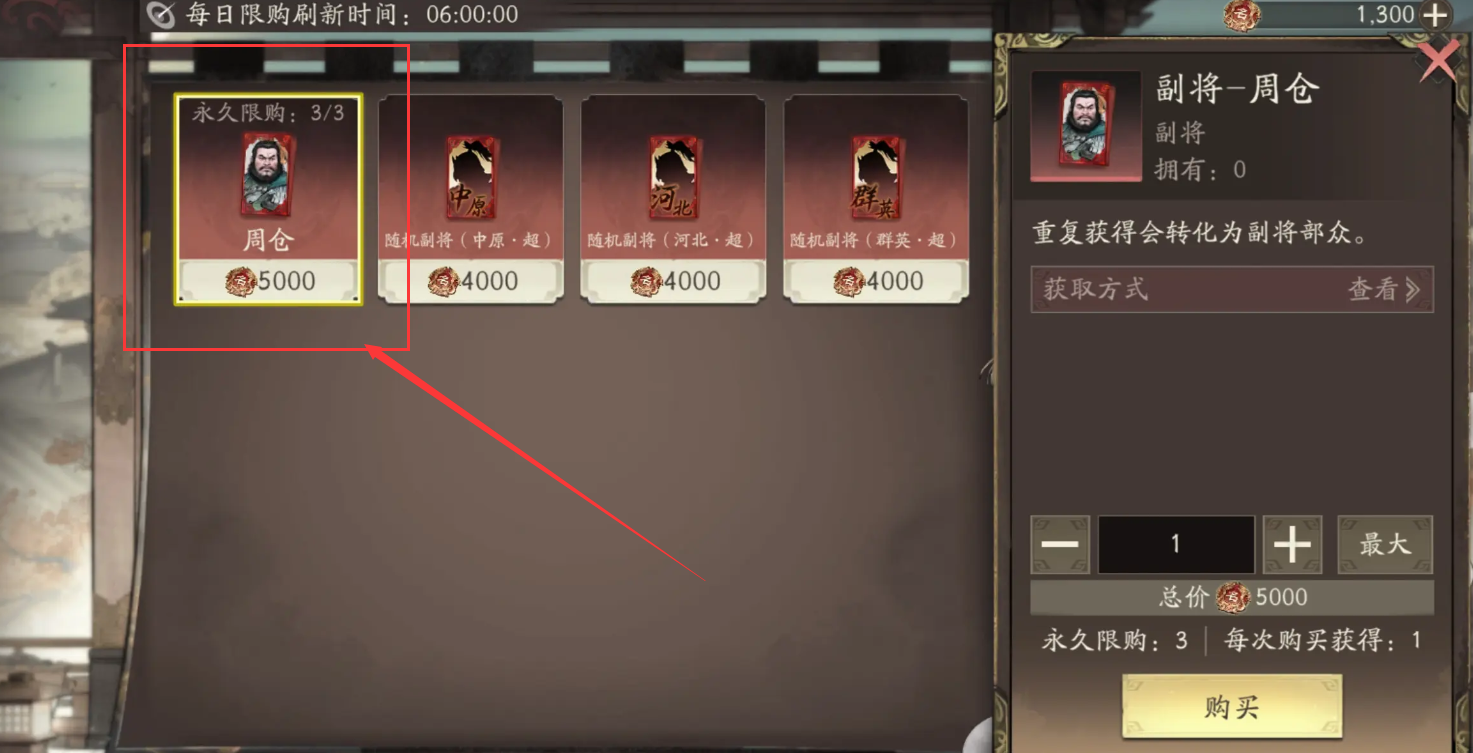 其三是前往游戏内商店使用副将碎片兑换,需消耗5000枚碎片即可换取一名周仓。值得注意的是,该商店最多可兑换三名周仓,便于玩家用于升星强化,进一步提升整体战力。