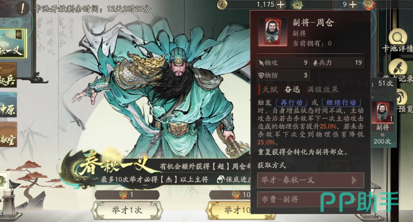 其二是参与限定卡池——关于主题的高级招募活动,有机会抽到更高品质的周仓单位,推荐资源充足的玩家优先考虑此方式。