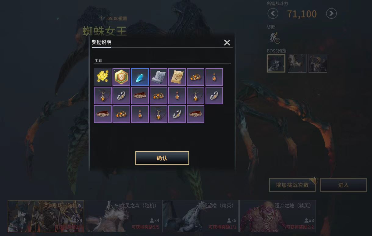 第二种是随机副本,采用四人组队形式,系统内置佣兵匹配功能,即使缺少队友也能快速成行。每天拥有两次基础奖励次数,消耗道具后最多可追加三次。产出内容涵盖武器、首饰、强化石、金币以及设计图等实用物品。整体难度较低,操作压力小,即便是挂机佣兵也能顺利完成任务,适合日常稳定刷取装备。