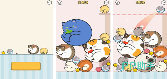 采用非常好玩的合成玩法,在这里玩家将会看到很多可爱的肥猫,每种肥猫的等级是完全不同的,玩家要通过将两个相同的肥猫,放在一起就能合成,还能激发出肥猫的超强战斗实力。开局后会从上方不断掉落出不同等级的肥猫。每个关卡中都有具体的分数要求,只要满足了具体的分数之后,就能完成解锁的任务,关卡的难度也会越来越高。