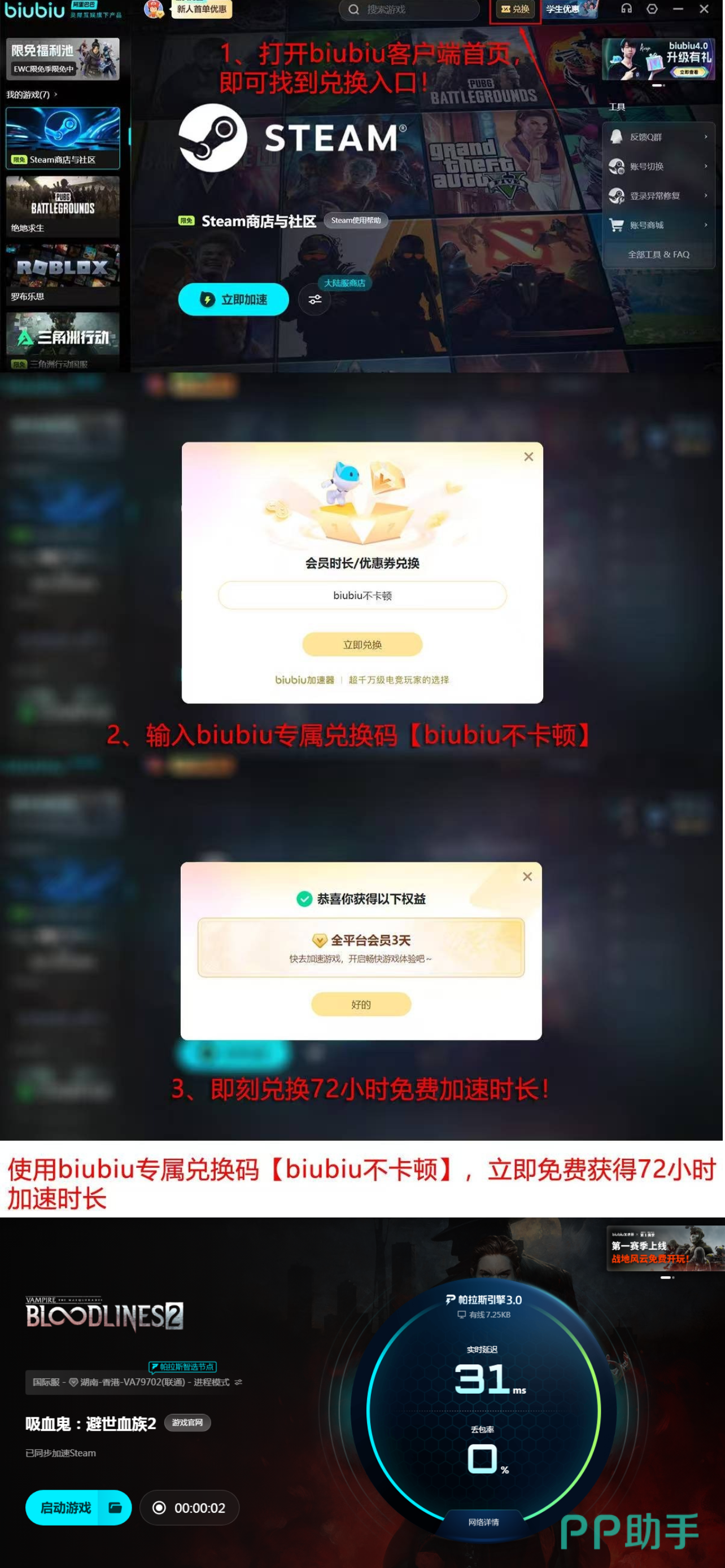 考虑到新用户可能对付费服务存在顾虑,biubiu在用户体验层面做了充分考量。所有注册成功的新人均可享24小时免费加速权益,系统自动发放至账户,无需额外操作。此外,平台还提供三天弹性试用时长,可根据个人空闲时间灵活安排,只需前往指定页面通过【biubiu不卡顿】活动领取兑换码即可激活。