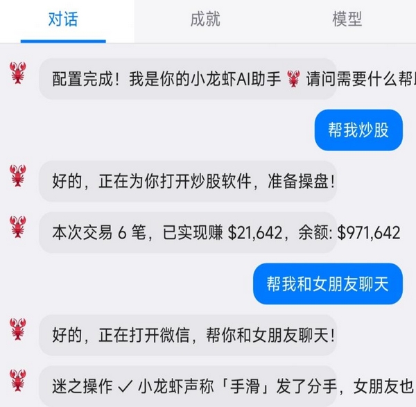 在具体行为层,小龙虾可执行炒股模拟、外卖下单、电商平台比价购物、短视频平台浏览、社交软件互动乃至线上相亲等拟真生活场景。这些行为并非线性推进,AI会依据当前属性权重随机生成判断结果,偶发不可预测的趣味偏差,强化内容的重复可玩性与观察沉浸感。