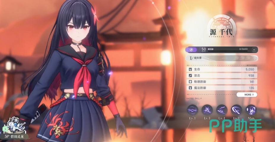 作为蓝原阵营中极具代表性的近战输出角色,源千代以JK造型搭配太刀武器的设计深受玩家喜爱。该角色在测试阶段通过签到获取,公测后可能转为限定卡池抽取。她属于暗属性主C,擅长持续作战并利用“失序”层数触发爆发性伤害。普通攻击共五段,可积累鬼火;重击为原地蓄力斩击。其元素战技“星鸣斩”释放范围型暗属性物理伤害,对带有鬼火的目标增伤,并缩短下一次重击蓄力时间。终结技则造成高额倍率的暗属物伤,在场地留下持续灼烧区域,同时命中目标也能减少重击冷却时间,强化连招流畅度。