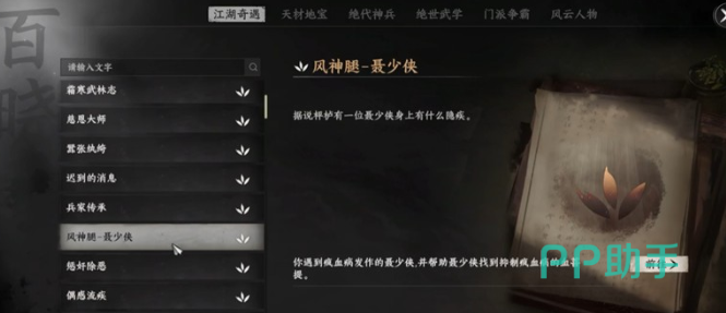鉴于玩家多次出手相助,聂少侠深表感激,最终决定将自己的独门武学风神腿传授给你。至此,这一强大的绝学正式归你所有。只要紧跟剧情提示,不遗漏关键对话节点,便能顺利解锁下一站江湖2风神腿,大幅提升角色实力。