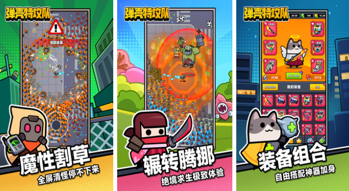 弹壳特攻队这款魔性十足的割草游戏也包含众多BOSS,每个五分钟都会出现一个精英级BOSS等待玩家挑战,装备和宠物的多样性组合让玩家的整体战力大增,轻松的单指操控设定可灵活躲避怪物追杀,各种高难度的BOSS需要融合技能才能击败,爽到飞起的割草闯关性质更让朋友们欲罢不能,爽快割草游戏爱好者快快挑战弹壳特攻队吧。