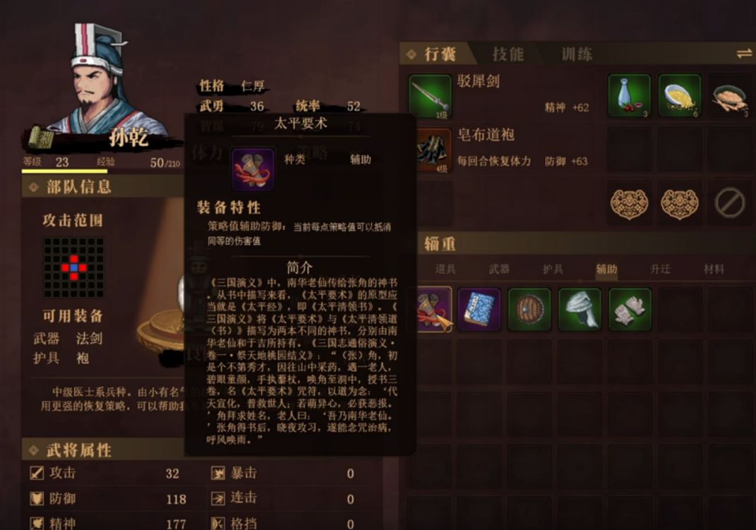 当孙乾开启试炼之路之后,凭借他比较高的谋略,解开了谜题,并且穿梭在山林古洞之间。他收集了散落各地的太平要术残卷,最终成功的获得了太平要术。这样能够为部队提供策略防御,也能够有效地抵御敌军猛烈的攻势。