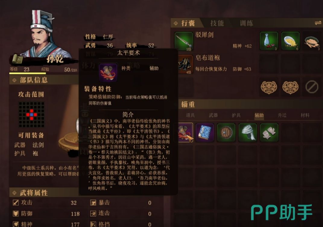 玩家想要获得太平要术,需要深入黄巾之乱的剧本,并且要探寻南华老仙的踪迹,所以想要获得太平要术并不是单纯的依靠战斗就能够获得,而是玩家需要参考历史的关键节点来做出合理的选择。