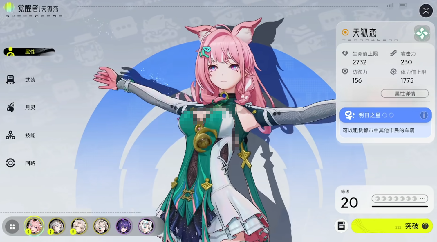 进入中期后,可逐步引入五星角色以拓展战术维度。推荐主C角色“天狐恋”,定位为木属性物理系群攻核心,普攻与E技能均以扇子为媒介,实现高频范围伤害,大招具备多段突进与持续压制效果;另一主力输出“照了”则属火属性长枪使用者,蓄力攻击可触发大范围横扫,释放终极技后进入变身状态,获得浮空机动性、攻击范围扩大及普攻附加远程斩杀判定等复合增益。