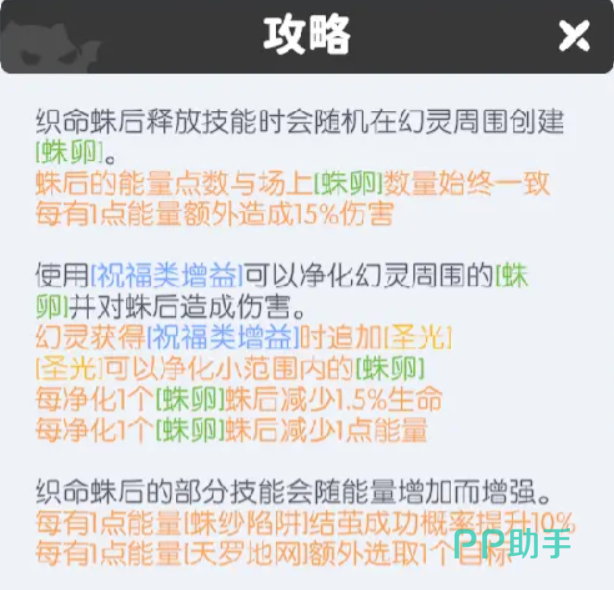 以蛛后为例,其核心机制为持续产出蛛卵,每枚蛛卵将叠加增益(对自身)与减益(对玩家),形成滚雪球式压制。此时若仅靠高输出硬推,往往因负面效果叠加过快而溃败;正确解法是配置具备“祝福类净化”能力的角色,大幅缩短蛛卵持续时间,从根源上瓦解其机制循环。前期可沿用常规主力阵容过渡,但进入中后期后,必须围绕Boss机制重构队伍构成,实现“机制克制>数值碾压”的战术转型。
