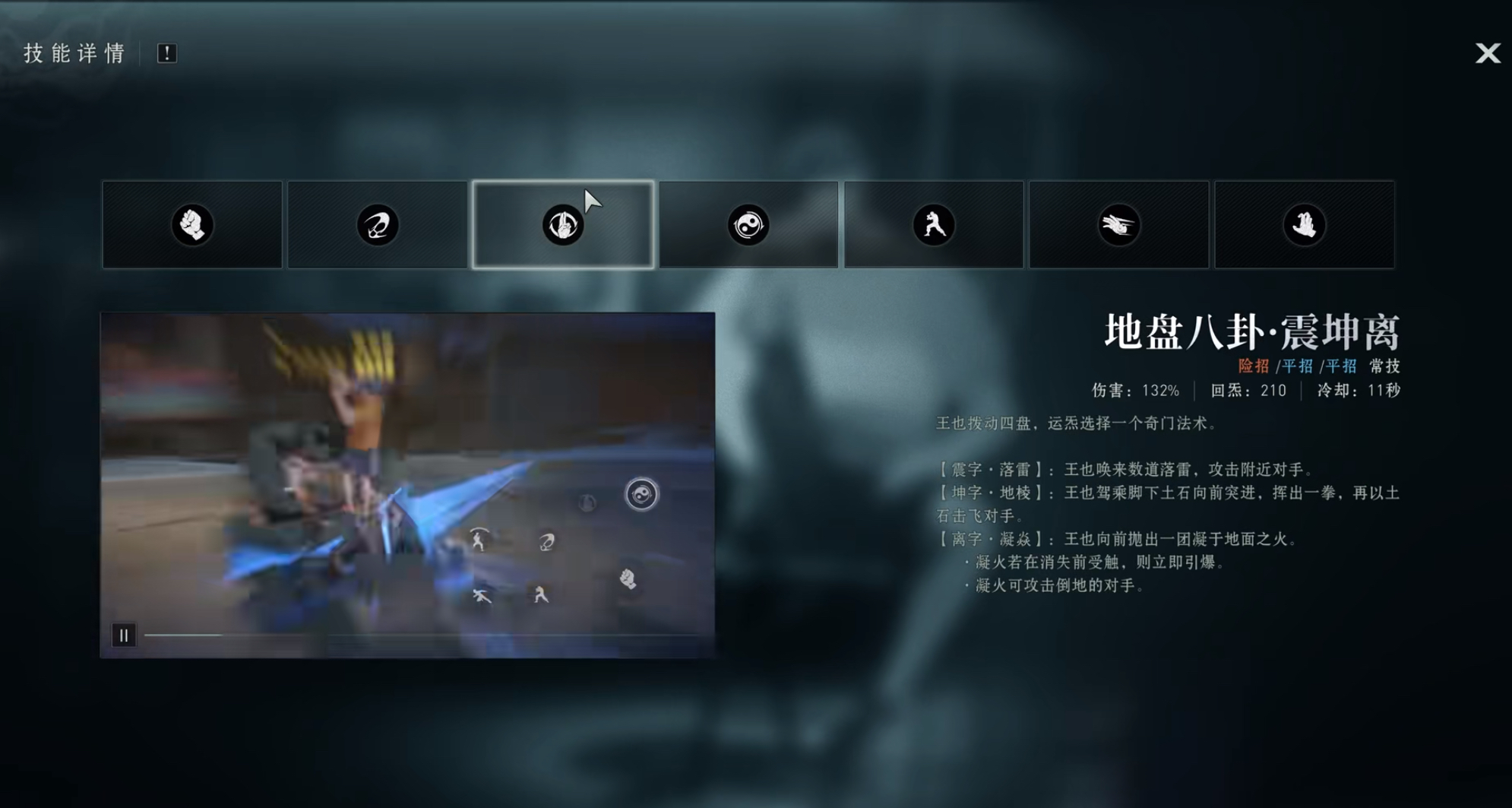 4、风后奇门,出自周圣之手,现由王也继承使用。此技专注于空间与时间的调控,在战斗中可通过定位中宫来掌控生门与克门的变化,实现战术压制与走位优势。