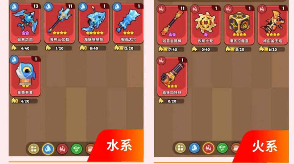 宝石系统强调属性统一性。仅当全部宝石均为同一元素时,方可激活对应套装羁绊,获得可观的额外伤害增幅。例如:选用光系船长,则全套宝石必须洗练为光属性。海兽配置遵循“同源原则”——其元素属性须与船长完全一致,因二者共享等级与星级成长加成;品质优先级低于属性匹配度,非红色海兽只要属性正确,同样具备有效战力。