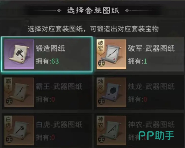 所有锻造操作均需消耗两类关键材料:锻造图纸与锻造材料。图纸分为“普通随机图纸”与“特殊指定图纸”。前者产出宝物归属随机套装,适合前期广泛建库;后者则锁定特定套装,确保锻造结果可控,适用于凑齐套装的关键阶段。由于特殊指定图纸获取难度更高,建议优先使用普通随机图纸积累多套基础部件,在仅缺1件即可达成两件套或四件套时,再精准投入特殊指定图纸,从而优化整体资源利用率。
