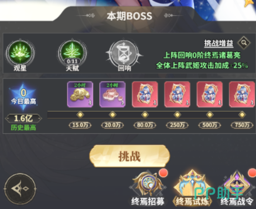 玩家可通过三条独立路径积累招募令:其一,完成终焉战令全部挑战任务,累计可领取30枚招募令;其二,参与终焉试炼副本,每次刷新固定产出4枚,7日内最多获取28枚;其三,通过礼包兑换渠道,每周可免费获得1张招募令,并支持以300钻石/张的价格额外购买,单周上限为14张。若全程未进行任何充值,三线合计最高可得72枚招募令。而终焉武姬保底获取需80次抽取,因此零氪方案存在8枚缺口,建议适度投入以确保稳定获取。对预算充足的玩家而言,直接解锁终焉战令不仅即时获得1位终焉武姬,还可额外领取进阶奖励中的60枚招募令,大幅缩短资源筹备周期。