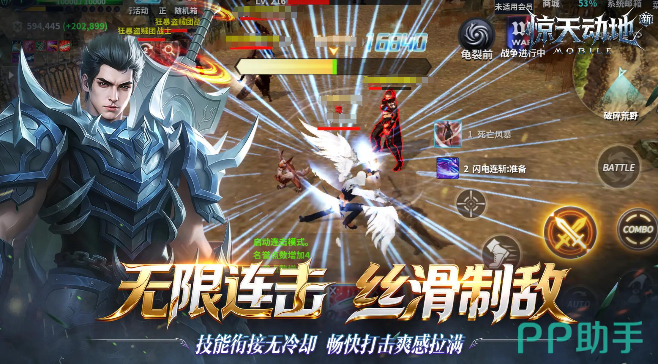动作系统是本作最突出的体验支点。游戏完整继承端游的实时联机交互架构,并彻底打破传统技能释放的线性框架——所有主动技能均无固定施放序列,支持玩家自由组合连段。当进入无限连击状态后,技能间无缝衔接且完全不受冷却时间约束,每一次命中都具备明确反馈与打击感,显著强化操作沉浸度与即时爽快体验。