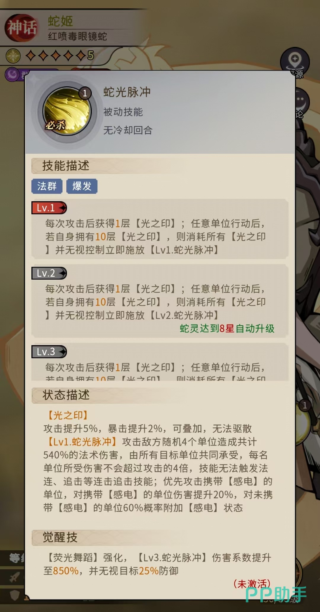 尽管单次获取概率存在浮动,但通过每日坚持参与上述活动,可稳步累积蛇姬本体与结晶,为后续突破与升星奠定基础。角色机制方面,蛇姬拥有极强的AOE爆发潜力:主动技能命中多个目标时,附带感电效果,使敌方每次攻击额外损失生命值;每次普攻或技能命中均可叠加“光之印”,叠满10层后触发“蛇光脉冲”,造成巨额法术伤害;被动技能进一步强化攻击力、伤害加成,并拓宽光之印获取途径,大幅缩短叠印周期,实现高频脉冲释放,群体压制力极为突出。