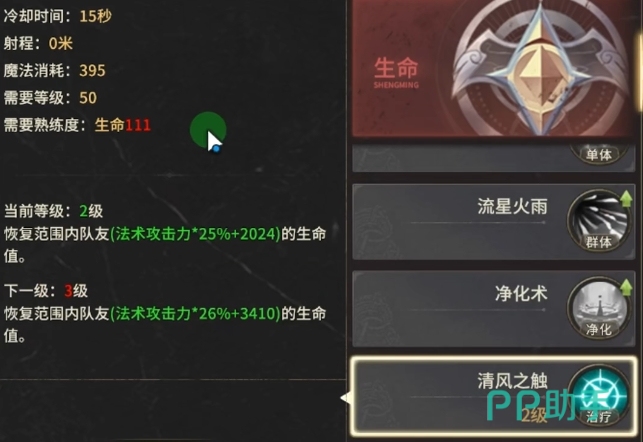 在这两个控制技能之后,可以依次升级治愈之光和魔法护盾,清风它能够为队友迅速恢复生命值,在队友受伤或陷入危险状态时,提供有效的治疗支援让团队在艰难的战斗中能够持续前行,魔法护盾则可以为队友分担一部分伤害,增强团队的整体生存能力,是团队作战中非常重要的辅助技能,通过按照这样的顺序对技能进行升级,法师能够在控制辅助流的玩法中充分发挥自己的作用。