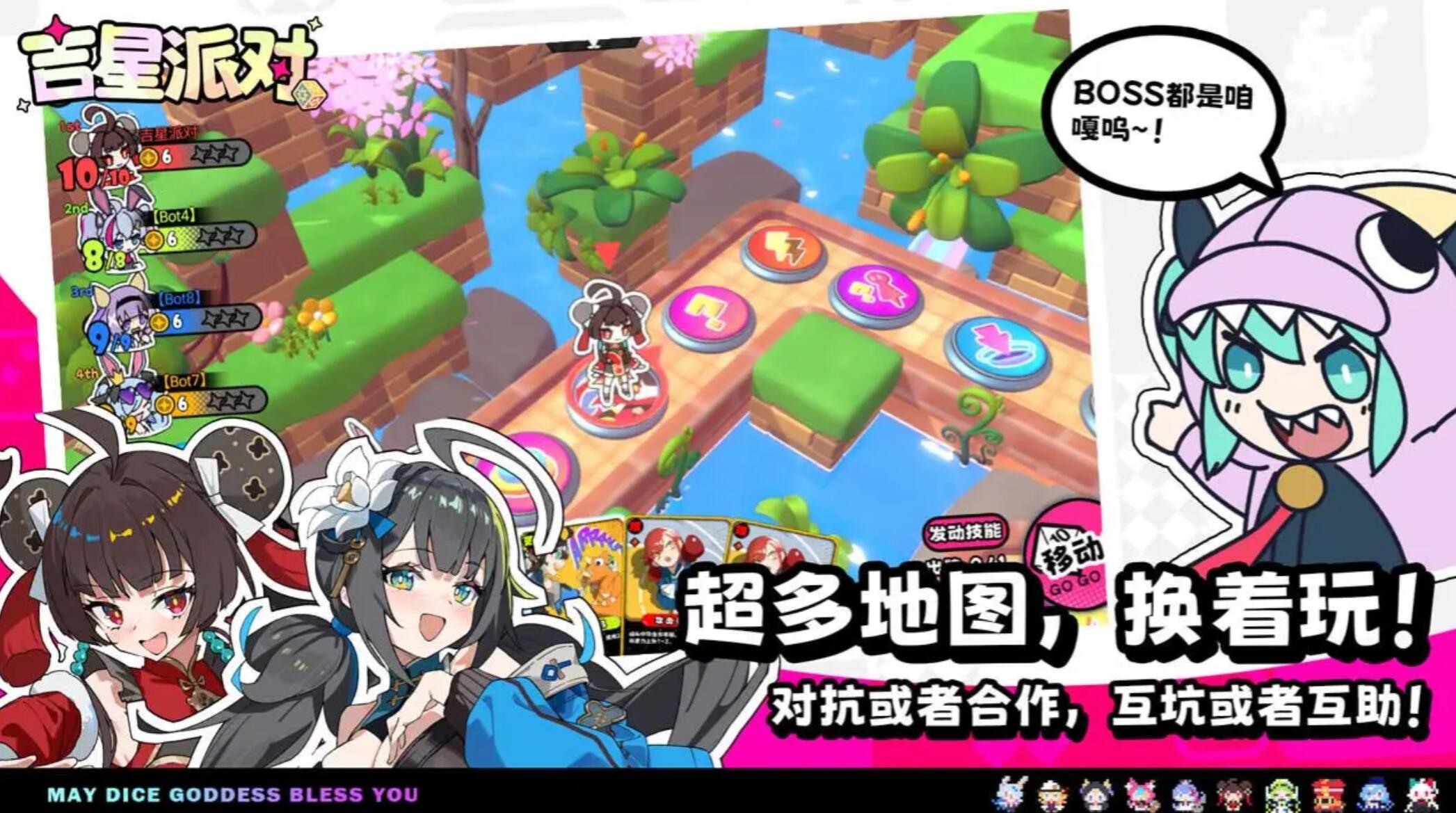 《吉星派对》以骰子为核心驱动机制,构建出兼具策略深度与临场趣味的交互体系。虽属轻松向派对品类,但其设计强调“可控的随机”——玩家每轮行动均需掷骰决定移动步数,而落点格子类型各异:触发任务事件、激活队友互动、进入战斗区域等均随位置变化而动态呈现。这种机制既保障公平性,又赋予每局高度不可预测性。