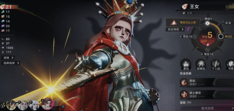 【王女】——高机动近战主C,以“战意”为核心资源构建输出链。一技能可瞬发140%伤害并激活战意,配合单手剑装备可实现高频突刺斩杀,对低防单位具备极强秒杀效率;二技能“猛斩”消耗20%当前生命值,对单体造成180%伤害并获得1层战意;终极技基础倍率为120%,但当战意≥50时,伤害将获得显著跃升。整套体系强调资源管理与节奏把控,成型后具备顶尖单体攻坚能力。