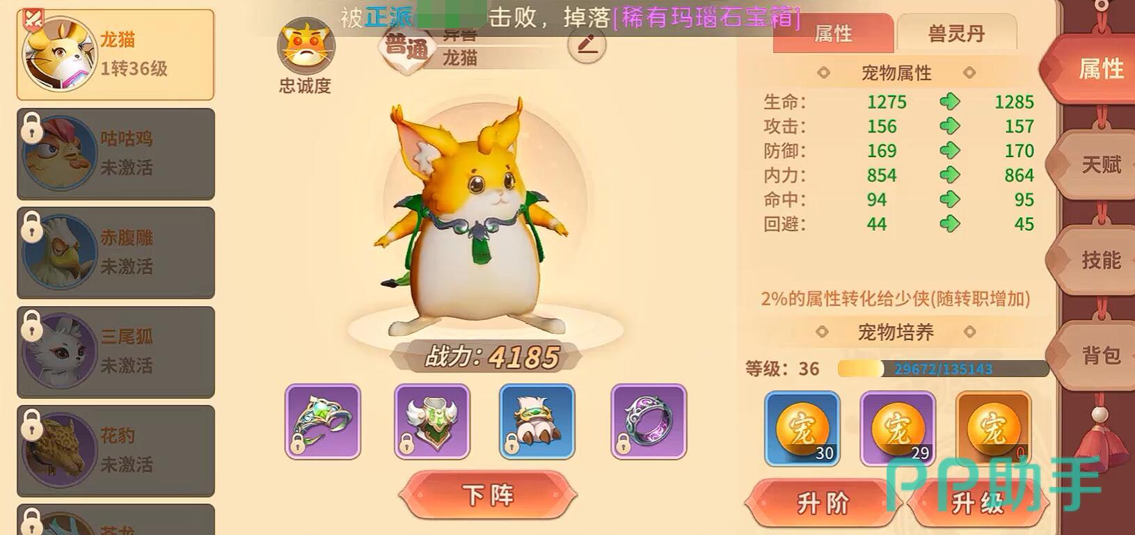 宠物系统中,优先选择容易获取且功能明确的辅助类宠。追风豹为完成“黑风寨围剿”任务后系统赠送,自带会心一击被动(主人暴击率+2%),资质洗练推荐集中于敏和暴,技能配置撕裂(造成持续伤害)与迅捷(移速提升10%),非常适合刀客在单刷过程中提高输出效率。另一只为签到第7天即可领取的龙猫,拥有生命光环(全队生命值+3%),资质主洗体和防,技能学习守护(降低受到伤害5%)与治愈(每秒恢复主人1%生命值),完美契合医师的续航需求。普通玩家无需追求稀有宠物,专注培养这两只即可满足PVE推进及PVP对抗的基本需要。