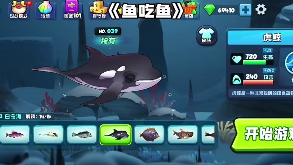 《鱼吃鱼》是一款休闲益智类游戏,特别适合上班摸鱼时玩。玩家操控一条小鱼,通过不断吞食比自己小的鱼来成长,同时躲避大鱼。游戏模式丰富,小鱼等级提升后可进化为更大的鱼,还能收集 100 多种生物,其中不乏神秘的史前生物。当玩家达到 50 级还能解锁核污染变异体,鱼尾巴能喷岩浆。跨服战中,北冰洋的独角鲸和热带海的机械鲨同屏对战,物理引擎营造出的效果非常真实 。凌晨蹲守限定地图 “百慕大三角”,漩涡里藏着的黄金安康鱼,咬一口就能直接升 10 级。