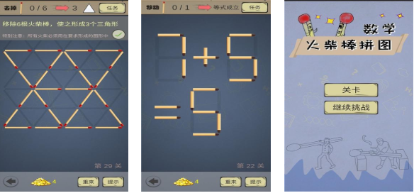 这款利用火柴进行拼图和等式换算的手游很有趣,益智休闲的内容呈现让火柴游戏高手满意,众多有意思的拼图游戏关卡代入感十足,更有贴心提示能辅佐玩家快速完成任务,虽然画面简约并不华丽但耐玩性还很不错,简单的移动火柴操作就可轻松完成挑战,脑洞大开的解谜玩法会让聪明的玩家沉迷。
